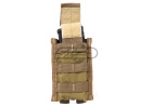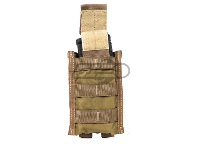 The S.O.TECH BLOCS Single Magazine Shingle M4 also has a Velcro brand pull tab closure and MOLLE/PALS webbing on the front for the attachment of additional pouches. It is a lightweight but solidly built M4/M16 magazine pouch. The flap on top of the pouch locks your magazines in place so you do not lose them. There is a drainage grommet and reinforced binding tape on this pouch to hold up through various environment conditions.