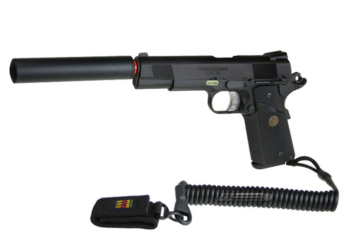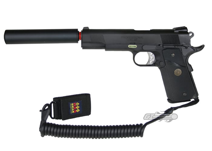 The release of the SOCOM Gear 1911 MEU has been high anticipated by those that know what this pistol is. To the untrained eye it may look like just another 1911 but it is ,in fact, much more. The SOCOM Gear 1911 MEU features a full metal body, upgraded iron sights for easier aiming, front cocking serrations on the slide, comfortable grips, ambidextrous safety for right and left handed users. Also for enhanced looks SOCOM Gear has added and engraved slide, lower frame and chamber; as well as a 3 hole trigger, skeleton hammer, and beaver tail. A threaded adapter is included in the package.