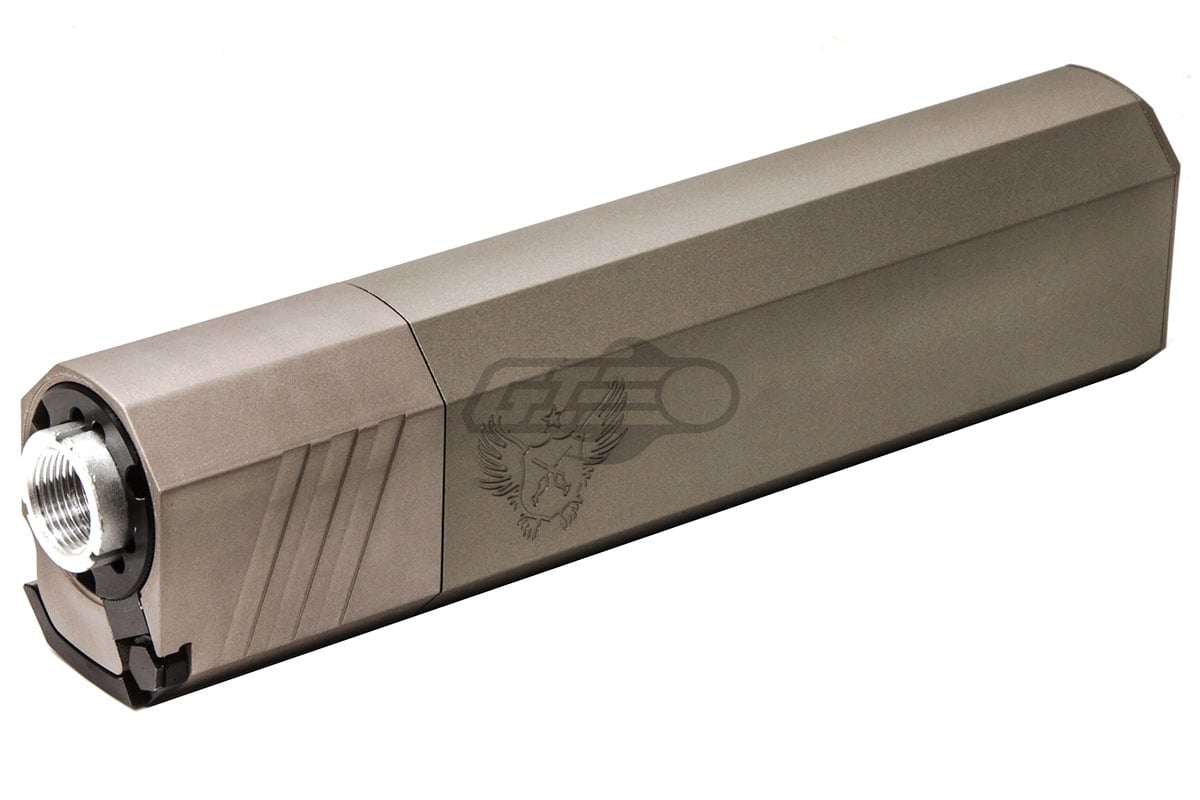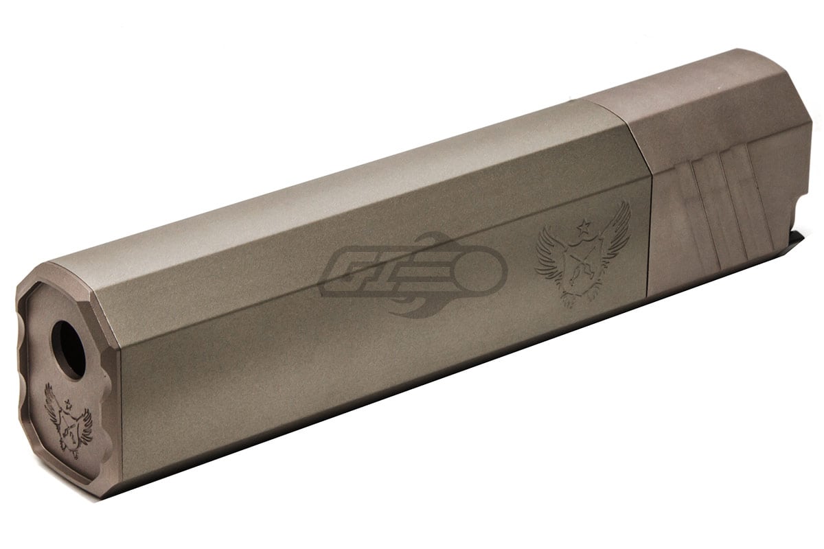 In the past several years, people are looking for different suppressors, but have you even notice this unique one? We now present to you the Official Licensed SilencerCo Osprey mock suppressor by Ace 1 Arms! The mock suppressor is a rectangle shape that other barrel extensions lack. The mock suppressor can attach to any pistol with threaded outer barrels, GBB & AEG SMGs/Rifles with a 14mm Clockwise thread. What we can say, this barrel extension is a prefect model fit for different airsoft guns in the market. The officially licensed SilencerCo Osprey style mock suppressor has the same locking structure as the real one, so you ensure it is lined up with your gun's frame.