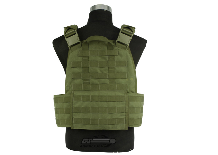 [T13B05][09819 / 615OD]The Specter Modular Plate Carrier is a low profile and modular plate carrier that is made from the highest quality materials. The Specter Modular Plate Carrier or MPC-1 features a 1000 denier Cordura outer construction with all bartack locations backed with 1250 denier ballistic nylon for maximum durability. The chest and back panels of the plate carrier are padded with 3/8" EVA closed cell foam and feature stitched in cooling channels to keep the plate carrier cool and comfortable. The shoulder straps of the vest are also padded with EVA closed cell foam and are 2" wide and feature heavy duty side release buckles. The side panels of the MPC feature external and internal webbing allowing for increased modularity. The side panels are anchored and adjusted by 4' wide velcro attached to two layers of heavy duty elastic which creates a very stable and flexible adjustment system. The Specter Modular Plate carrier can easily compete with high end vests in terms of design and build quality and is priced to be attainable for most budgets.