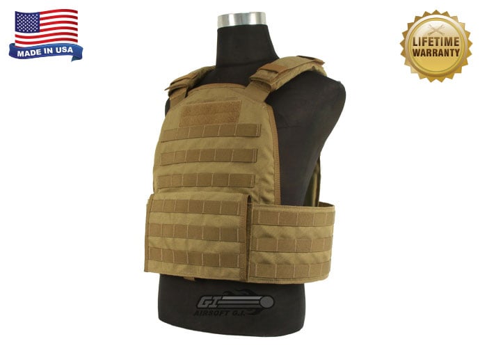 [T13B07][09820 / 615COY]The Specter Modular Plate Carrier is a low profile and modular plate carrier that is made from the highest quality materials. The Specter Modular Plate Carrier or MPC-1 features a 1000 denier Cordura outer construction with all bartack locations backed with 1250 denier ballistic nylon for maximum durability. The chest and back panels of the plate carrier are padded with 3/8" EVA closed cell foam and feature stitched in cooling channels to keep the plate carrier cool and comfortable. The shoulder straps of the vest are also padded with EVA closed cell foam and are 2" wide and feature heavy duty side release buckles. The side panels of the MPC feature external and internal webbing allowing for increased modularity. The side panels are anchored and adjusted by 4' wide velcro attached to two layers of heavy duty elastic which creates a very stable and flexible adjustment system. The Specter Modular Plate carrier can easily compete with high end vests in terms of design and build quality and is priced to be attainable for most budgets.