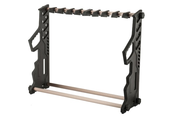 The TMC Rifle Gun Rack is made of durable polymer and metal providing a durable gun storage platform. The gun rack features TAR-21 side ends, and the guard on the rifles doubles as carry handles. Between the two TAR-21 ends, 11 rifles can be propped up on the rack and displayed.