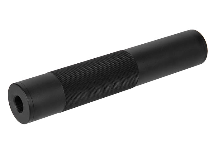The Tac 9 AC-542B 35X198mm Noveske Force Airsoft Silencer has a metal construction that is durable and light enough to not add too much weight toward the front of the airsoft gun. This unit has 14mm counter clockwise threading that you can easily attach onto most airsoft guns. The mock suppressor does not silence any noise coming from the airsoft gun, but it does add onto the appearance of your weapon. Equip this airsoft silencer to help cover up an extended inner barrel or if you simply want to give your set up a new look.