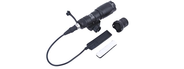 The Tac 9 Industries M300A Mini Scout is a compact flashlight that attaches to the rail system on an airsoft gun, without sacrificing too much space and weight on the rail. The light uses a CREE Q5 LED with 200 lumens of output to allow the user to get a good spot light on their target. The light comes with a pressure switch included in the box to have a quick access switch attached to the rail or foregrip of a weapon. The TAC-9 M300A scoutlight is a compact option for a weaponlight for any rifle.