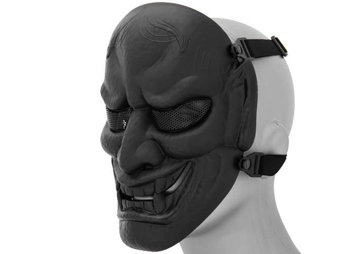 The Tac 9 Wisdom Mask is a great option for full face protection. The mask secures tightly with the assistance of the adjustable straps around the head. Please keep in mind, a mesh lens will stop large solid objects such as a BB but cannot stop smaller objects like sand, dust, smoke or fragmented BBs.