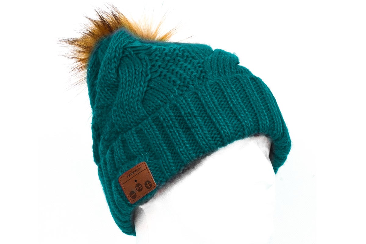 Tenergy Bluetooth Braid Beanie w/ Fur Pom Pom (Teal)