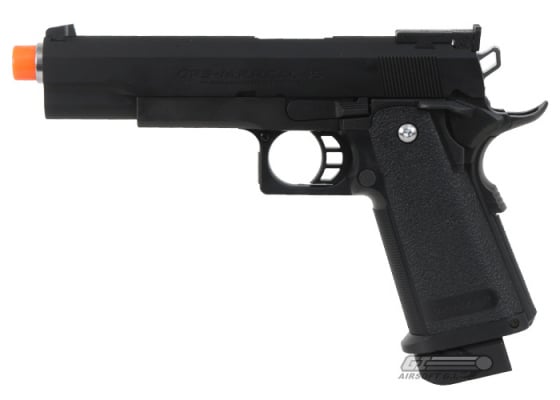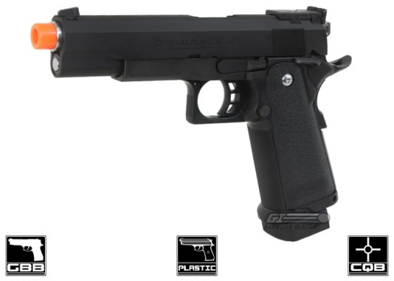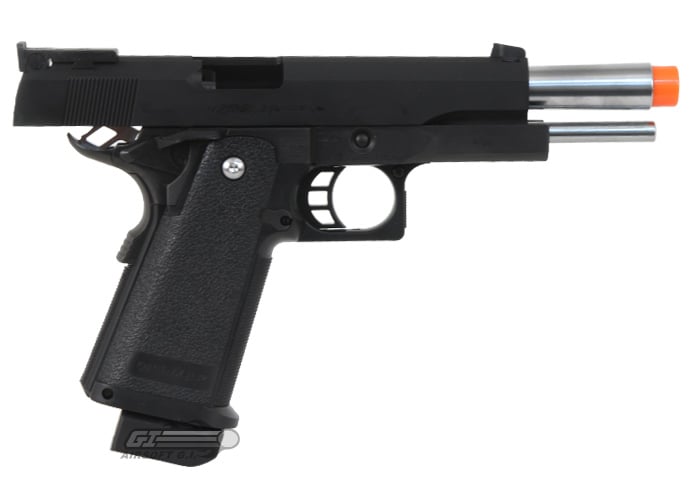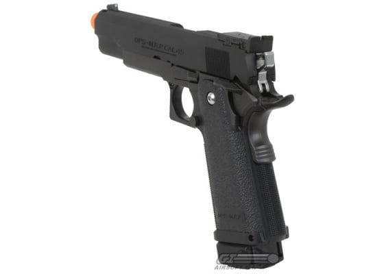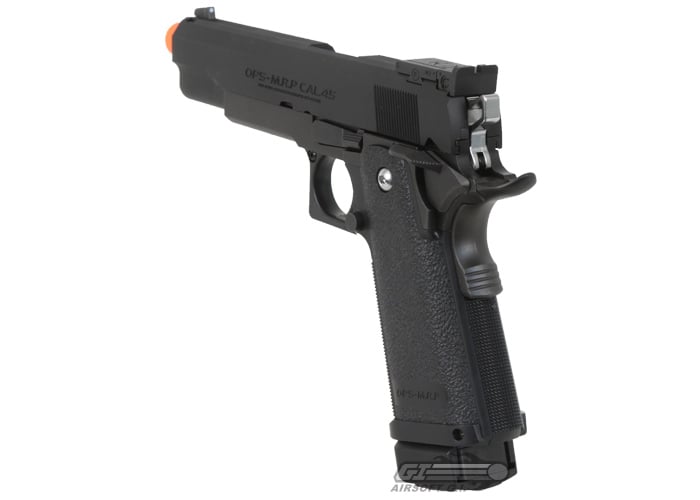 The Tokyo Marui High Capa5.1 is one of the most famous airsoft hand guns available. It is essentially a double stacked 1911; the breakdown and the operation remain about the same. The functional grip safety and ambidextrous slide safety make its operation safe for all users. The rear sight is adjustable for improved accuracy and personal preference. Although the gun is constructed primarily from plastic there are a wide range of accessories and after market parts for this gun. The user can modify it into a tactical gun for the field or into a race gun for competition. This airsoft gun has the well established operation of the 1911 with the advantages of a double stacked magazine. This gun is a must buy for the beginner or the enthusiast.