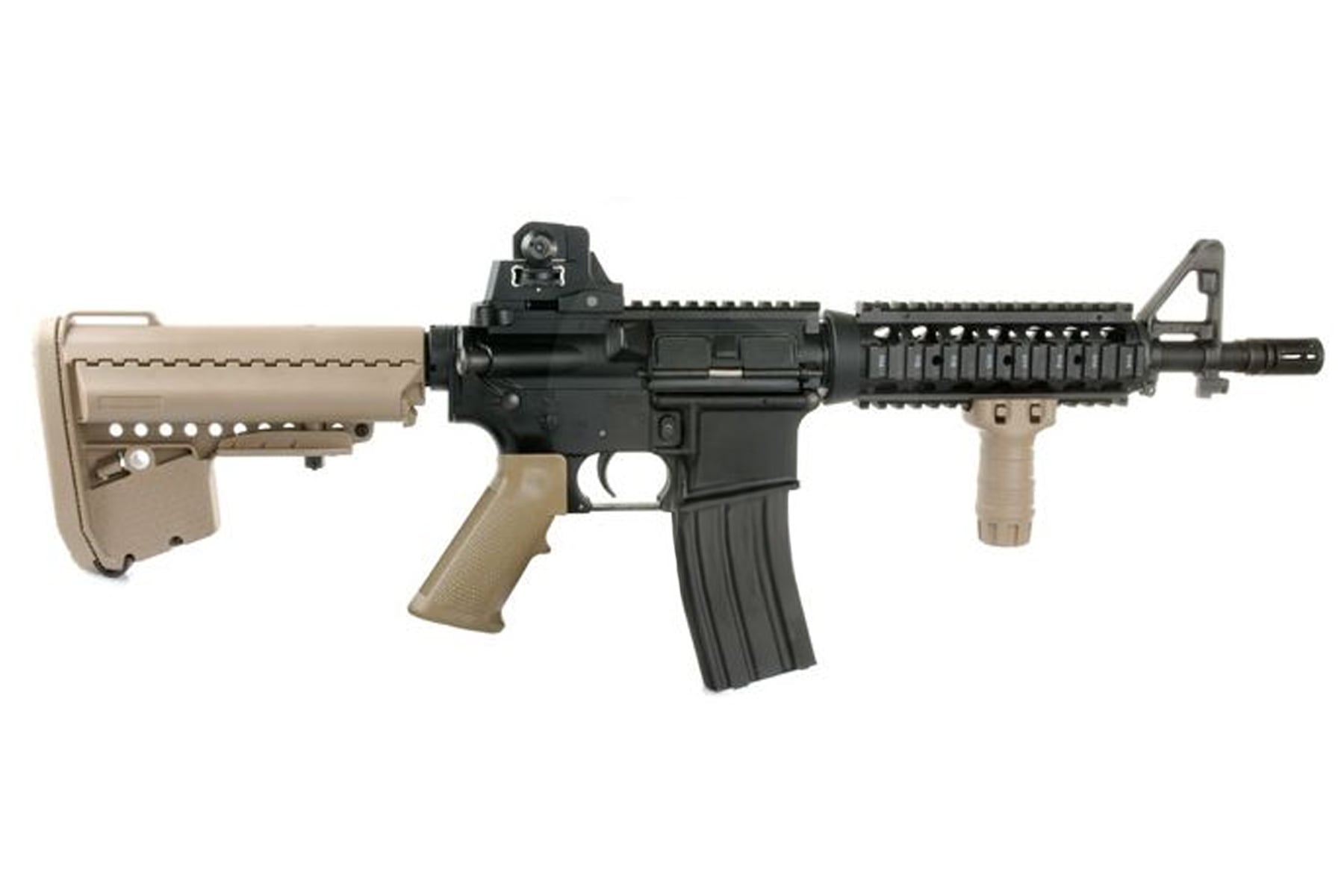 Constructed with a full-metal body and high-durability ABS furniture, the CQBR balances realism and field usability. It’s powered by a rear-wired Tokyo Marui SOPMOD battery (not included), and features a quick-change system for fast swaps between matches. With semi and full-auto fire modes and compatibility with SOPMOD-type magazines, this rifle offers the flexibility you need on dynamic fields.Specifications