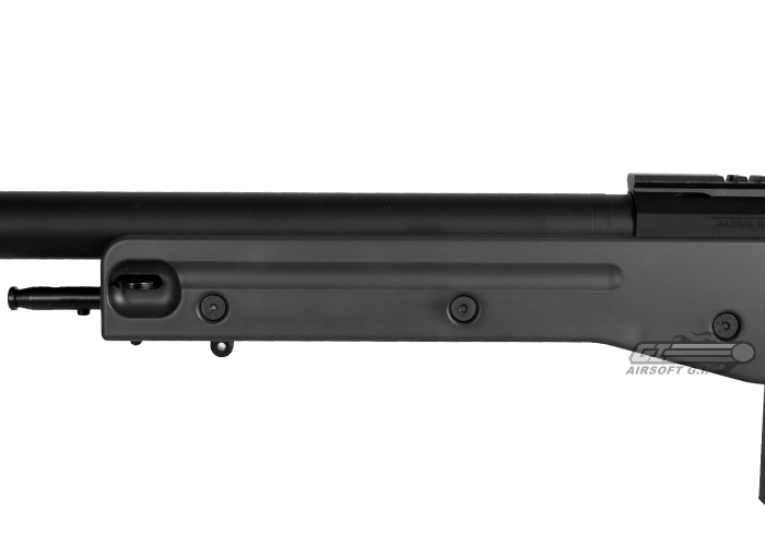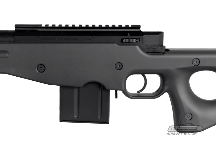 The Tokyo Marui MK96 is a brilliant bolt action airsoft gun. The exterior is made of durable ABS plastic, just like all other high quality Japanese guns, but the important functional pieces internally are made of metal. There are many bolt action, spring powered, MK96 sniper rifles out there today but what sets the Tokyo Marui apart is the location of the magazine. The Tokyo Marui MK96 is more realistic than the others because the magazine is in the right location, right in front of the trigger. Other cheaper variants place the magazine near the front of the stock to accommodate for the large cylinder that is needed to power the gun. However Tokyo Marui have discovered a way to accommodate for the spring cylinder without sacrificing realism. The Tokyo Marui MK96 features a top rail for an optional scope and a quick detach bipod perch, for an optional bipod. The barrel is also threaded, making it ready for a barrel extension, and the hop up is an easy to turn knob located on the bottom of the stock. This is an excellent sniper rifle from Tokyo Marui, and there are sure to be many high quality upgrade parts for it soon!