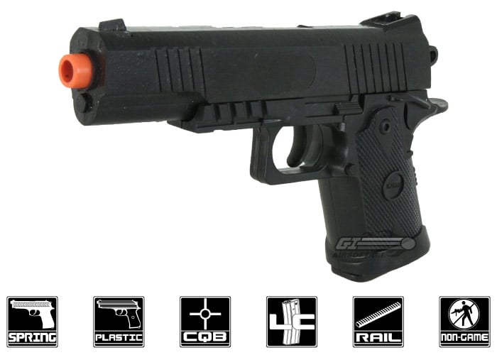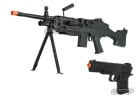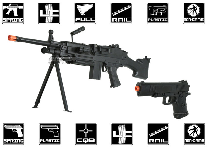 Package Includes: UK Arms M249, UK Arms Spring style 1911, Safety glasses, sling, flashlight, laser, low quality BBs