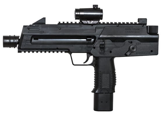 The Umarex Steel Storm Tactical BB gun has a 30 shot capacity, with a 300-round reserve! It allows you to shoot 6-shot bursts in "full-auto" mode, and single shots in semi-auto mode. The gun gives the feel of a real gun in your hands with its ultra-accurate look and feel. The gun is powered by dual 12 g CO2 capsules, and the CO2 is housed in a drop out magazine for ease of access.