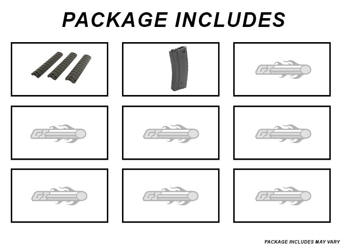 Package Includes: One (1) Gun, One (1) Magazine, Two (2) Flip Up Iron Sight, Three (3) Rail Panels