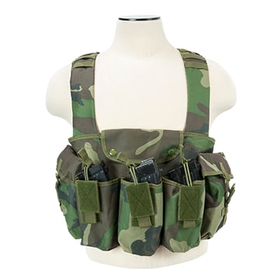 [F16C00][24343 / CVAKCR2921WC]Sometimes a plate carrier is just too much, especially in the hot summer sun or when you want to be light on your feet. Chest rigs are the ultimate light weight solution to carrying your necessities on the field at a fraction of the weight. The VISM AK chest rigs are meticulously stitched from high quality nylon, and use only the best materials. Reinforced hook and loop tabs keep the high strength bungee cord pull tabs over your magazines to ensure they don't fall out of the integrated pouches. The three integrated magazine pouches will comfortable hold two full size AK style magazines, giving you a total of six magazines at your fingertips. The two general purpose pouches on the sides can be used to store other items like speed loaders, extra ammo, batteries, water bottles and other miscellaneous tools. The large map pocket in the center of the chest runs the entire interior of the rig, giving you a huge storage pocket for additional items.