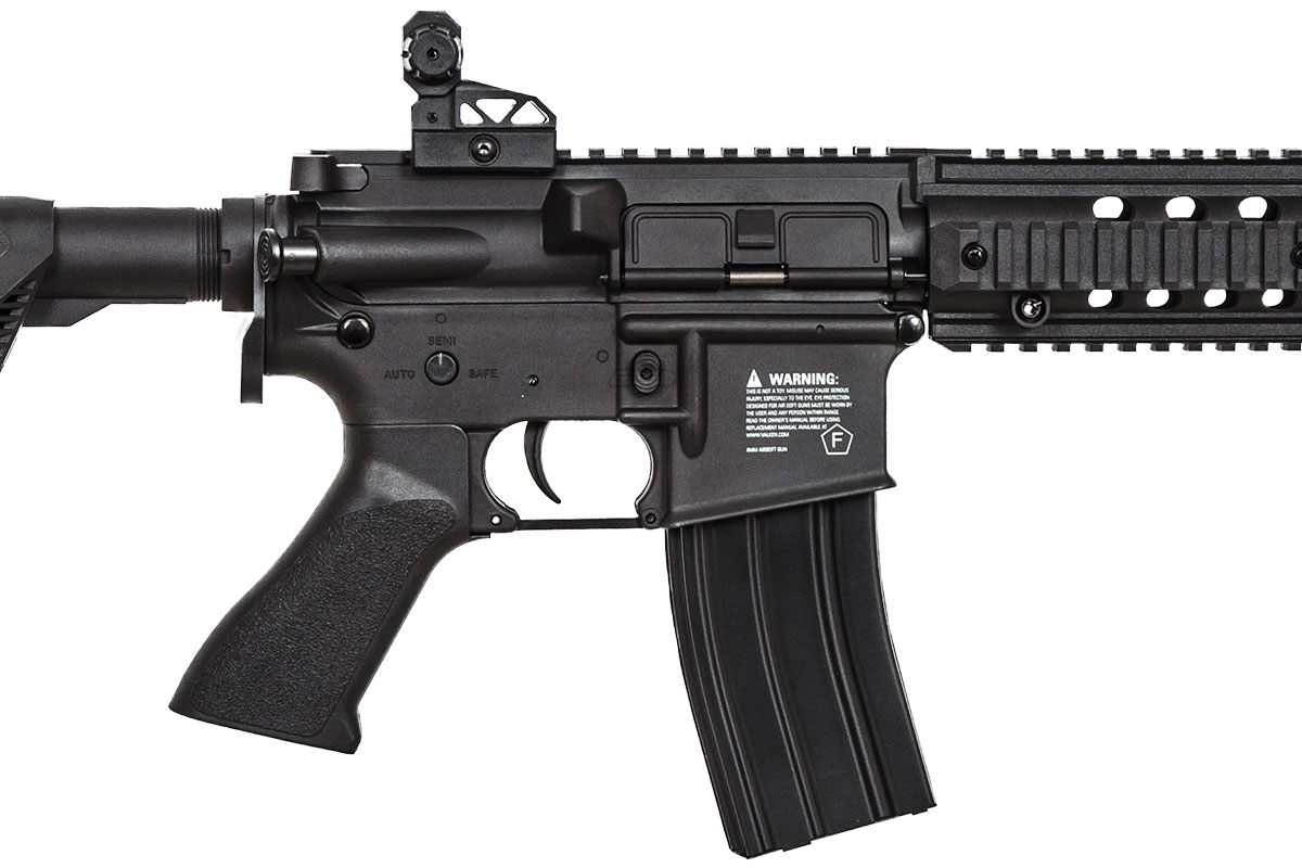 The second generation of Valken's Battle Machine series has arrived! Designed to address and meet the demands of players looking for a competitive and affordable AEG, the Battle Machine MOD-L configuration comes standard with some really excellent features, rail mounted flip up sights are included, and are removable should you choose to run the gun without them instead. The body of the battle machine is made from a High Density Polymer or HDP, the RIS is also made from HDP which cuts down the weight and cost of the gun but still allows a sturdy platform to attach all of your favorite accessories. The retractable 6 position crane stock also houses the battery, and has plenty of space for LiPo and NiMh batteries. The MOD-L is an excellent entry into the airsoft world, and makes for a perfect outdoor play rifle without breaking the bank. The Valken MOD-L makes an excellent close quarters to medium range rifle for all play types.