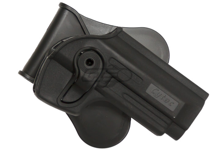 The Cytac Paddle Holster series are made of durable high-tech black polymer materials. These holsters are widely used in law enforcement, self-defense, and many other tactical applications worldwide. Cytac holsters features a safety locking mechanism for a quick and easy draw of the sidearm. The main release button features a knurling pin to ensure proper and safe function of the release. Belt mounted users, the paddle features a specially injected soft silicone material to offer more comfort and less abrasion in addition to working with a wide array of belts from leather belts to duty & riggers belt. The platform can be adjusted and secured at different angles to offer an easier draw and holster motion.Specifications: