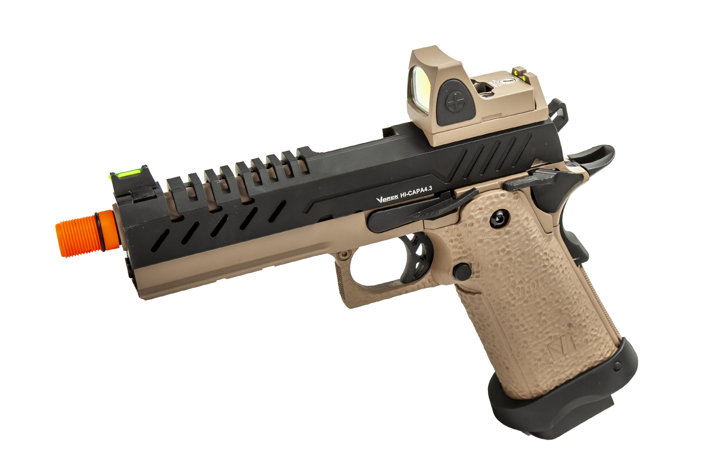Vorsk Airsoft 4.3 Hi Capa GBB Airsoft Pistol w/ Micro Red Dot (Tan/Black)