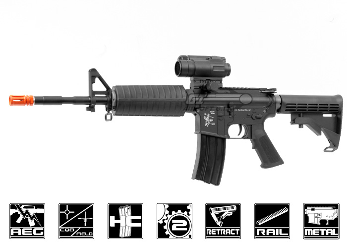 After searching for a while, I finally decided to pick this gun up. I knew I wanted an M4, preferably full metal, with a decent gearbox and compatible with real-steel parts. This fit the bill perfectly. I got a great deal on it, so I went ahead and made the purchase. To be completely honest, this was my first "actual" airsoft gun (I've been through my share of cheapo spring guns from sporting goods stores) so I really have nothing to compare it too, but I was quite impressed. The gun is fairly balanced and I am perfectly happy with the performance from a 9.6v nunchuck battery.