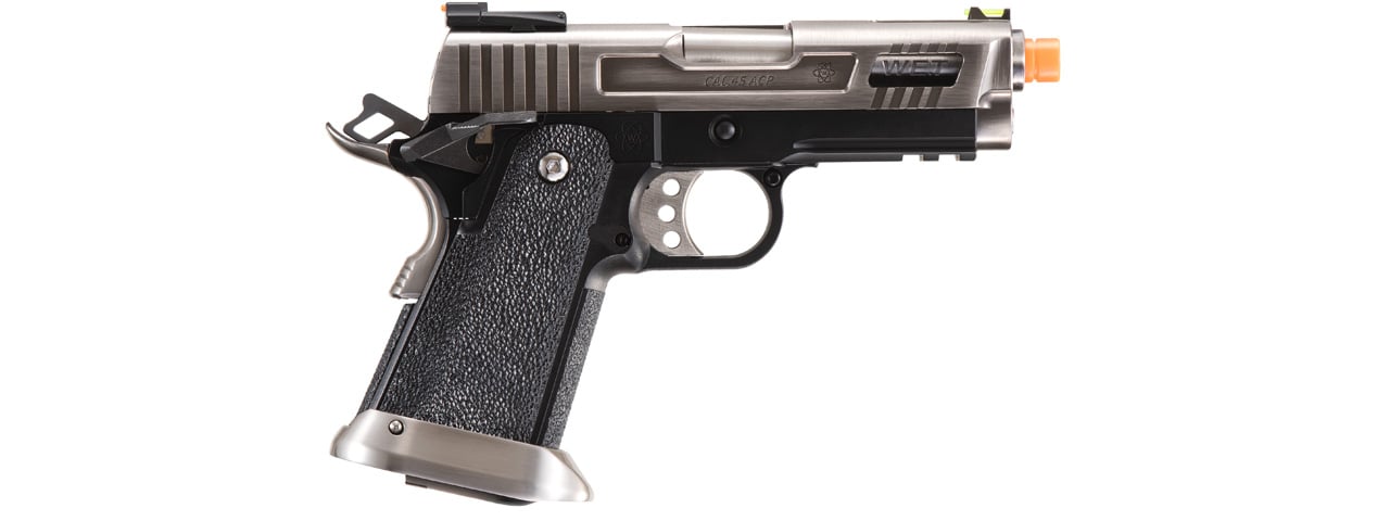 WE-Tech Hi-Capa 3.8 Full Auto Velociraptor Gas Blowback Pistol (Black/Silver)