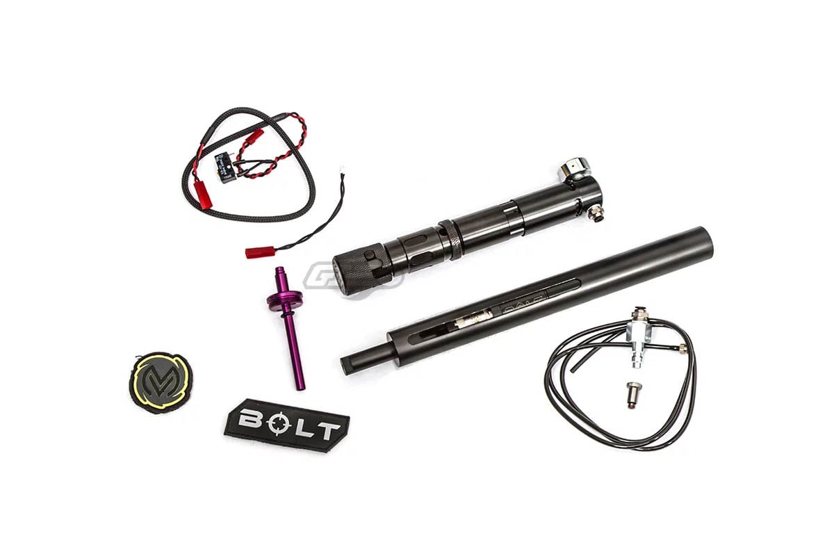 This bundle is truly the ultimate package. Included are one BOLT kit with a VSR-10 Cylinder head, the Wolverine BOLT Cylinder, Wolverine's STORM High-Pressure regulator, and the Wolverine WRAITH CO2 Adapter kit, which is fully compatible with the BOLT to switch to standalone CO2 cartridges as the power source. NO Battery included.Compatibility List: