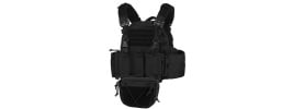 [71479 C11-77B]Dominate the airsoft field with the Wosport ARK Tactical Plate Carrier. This fully loaded plate carrier is built with durable cordura fabric and mesh material to keep the plate carrier strong and breathable on the airsoft field. The ARK Tactical Plate Carrier features MOLLE webbing all around the front plate bag, rear plate bag, and cummerbund to attach any MOLLE compatible pouch for maximum modularity. The shoulder straps and cummerbund come equipped with quick release tubes to make donning and doffing the plate carrier effortless and fast. The ARK Tactical Plate Carrier comes included with a removable elastic triple M4 magazine pouch and a removable sub-abdominal "dangler" storage pouch - making this plate carrier ready to hit the airsoft field straight out of the box. The ARK Tactical Plate Carrier also comes included with swift clips to attach any compatible placard or chest rig system to suit any loadout or play style. Additionally, these swift clips can also be removed to accommodate g-hook style placards - making the ARK Tactical Plate Carrier one of the most modular plate carriers on the market. The built-in modularity, functionality, and ease-of-use make the ARK Tactical Plate Carrier a true all-in-one package for any airsoft player.