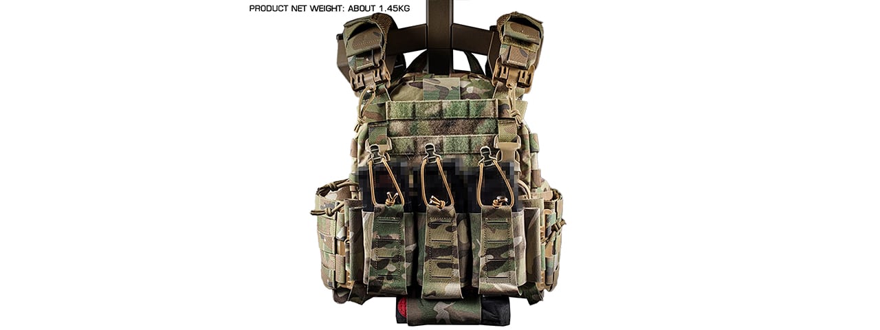 [71480 C11-77T]Dominate the airsoft field with the Wosport ARK Tactical Plate Carrier. This fully loaded plate carrier is built with durable cordura fabric and mesh material to keep the plate carrier strong and breathable on the airsoft field. The ARK Tactical Plate Carrier features MOLLE webbing all around the front plate bag, rear plate bag, and cummerbund to attach any MOLLE compatible pouch for maximum modularity. The shoulder straps and cummerbund come equipped with quick release tubes to make donning and doffing the plate carrier effortless and fast. The ARK Tactical Plate Carrier comes included with a removable elastic triple M4 magazine pouch and a removable sub-abdominal "dangler" storage pouch - making this plate carrier ready to hit the airsoft field straight out of the box. The ARK Tactical Plate Carrier also comes included with swift clips to attach any compatible placard or chest rig system to suit any loadout or play style. Additionally, these swift clips can also be removed to accommodate g-hook style placards - making the ARK Tactical Plate Carrier one of the most modular plate carriers on the market. The built-in modularity, functionality, and ease-of-use make the ARK Tactical Plate Carrier a true all-in-one package for any airsoft player.