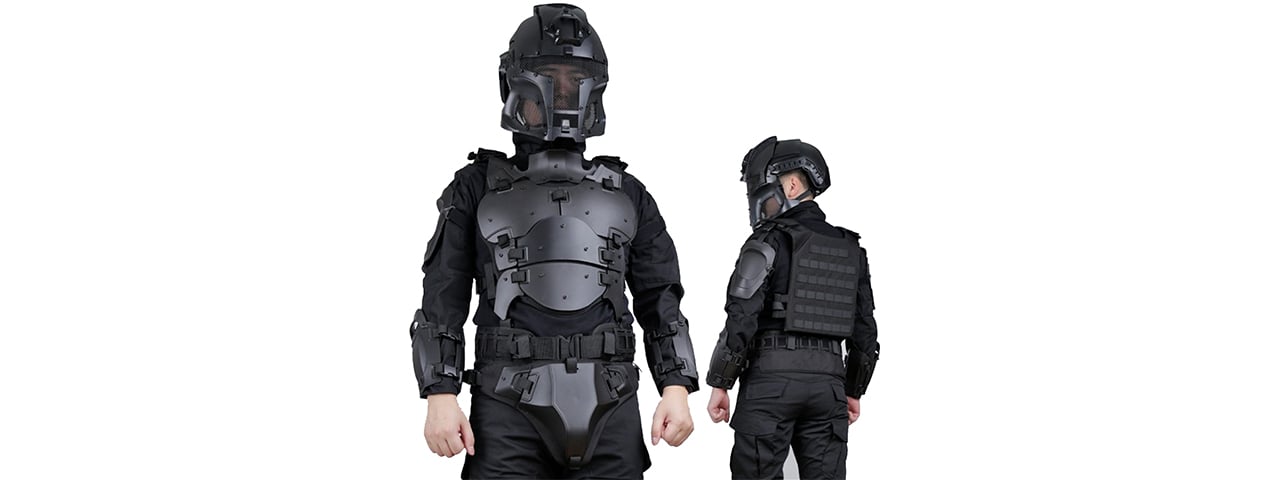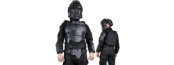 [71527 C11-64B]The Wosport Full Tactical WST Body Armor Suit is an intimidating piece of kit for Sci-Fi cosplay airsoft players. The segmented armor pads not only look awesome but adds tons of extra protection on the airsoft field. This suit comes included with shoulder pads, chest armor, wrist guards, and pelvic armor - turning the user instantly into a futuristic science fiction warrior! This body armor suit isn't just for looks. There is plenty of MOLLE webbing along the included belt and the back segment of the suit to mount any MOLLE compatible pouches. This level of customization allows players to tailor the suit to various needs of the airsoft field. Upgrade your science fiction loadout or cosplay with the Wosport Full Tactical WST Body Armor Suit!