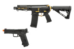 Zion Arms Full Metal R15 Short Barrel AEG Airsoft Rifle W/ ETU & Agency Arms EXA GBB Airsoft Pistol Combo (Black & Gold)
