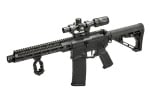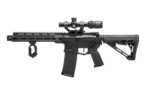 Zion Arms' debut airsoft gun hits the ground running! This new AR style AEG now sports all the essentials of a true carbine! The original finish remained from the first PW9 so it feels amazing in the hands and the finish looks absolutely stunning! Both the Outer barrel and rail system have been swapped for longer variations, and the rail is MLOK through and through with picatinny only at the top. The M4 AEG also sports a buffer tube and LT Delta stock for a minimalist low-profile aesthetic. What's more, you can now own this beautiful AEG as a part of a super convenient accessories package featuring the rifle itself, a foregrip an optic and in some packages a tactical flashlight! Everything you need to look cool and be prepared for any situation!